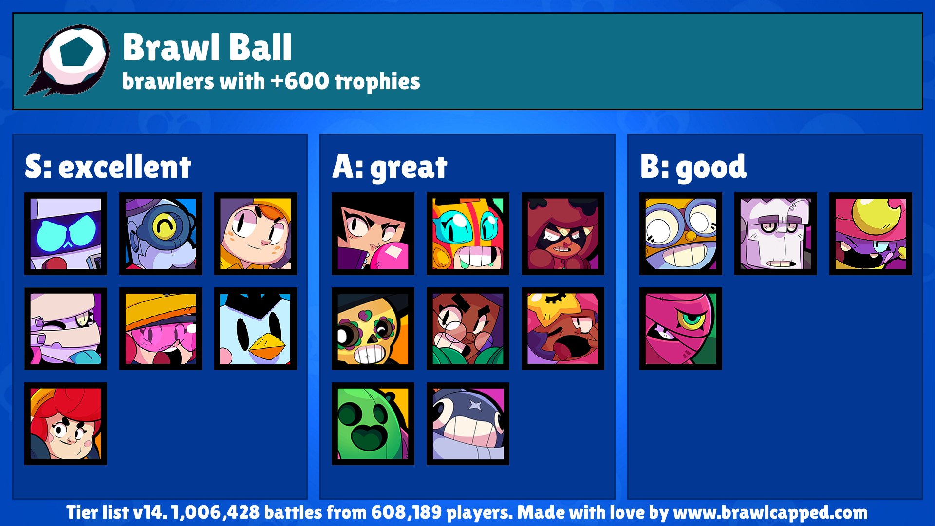 Use the galaxy arena tier list to find the best brawler for this brawl ball map in brawl stars. Some, like the tanky nita who unlocks very early on, are incredibly another reason why there isn't exactly a best brawler in brawl stars is that you can power up each hero to boost their stats, giving them more health, attack. Check the best brawlers for galaxy arena from last time this map was active. Daily meta of the best recommended brawlers compiled from exclusive discussions by pro players. Please like and share this video and don't forget to subscribe to the channel and hit the bell icon to receive notifications for upcoming videos.